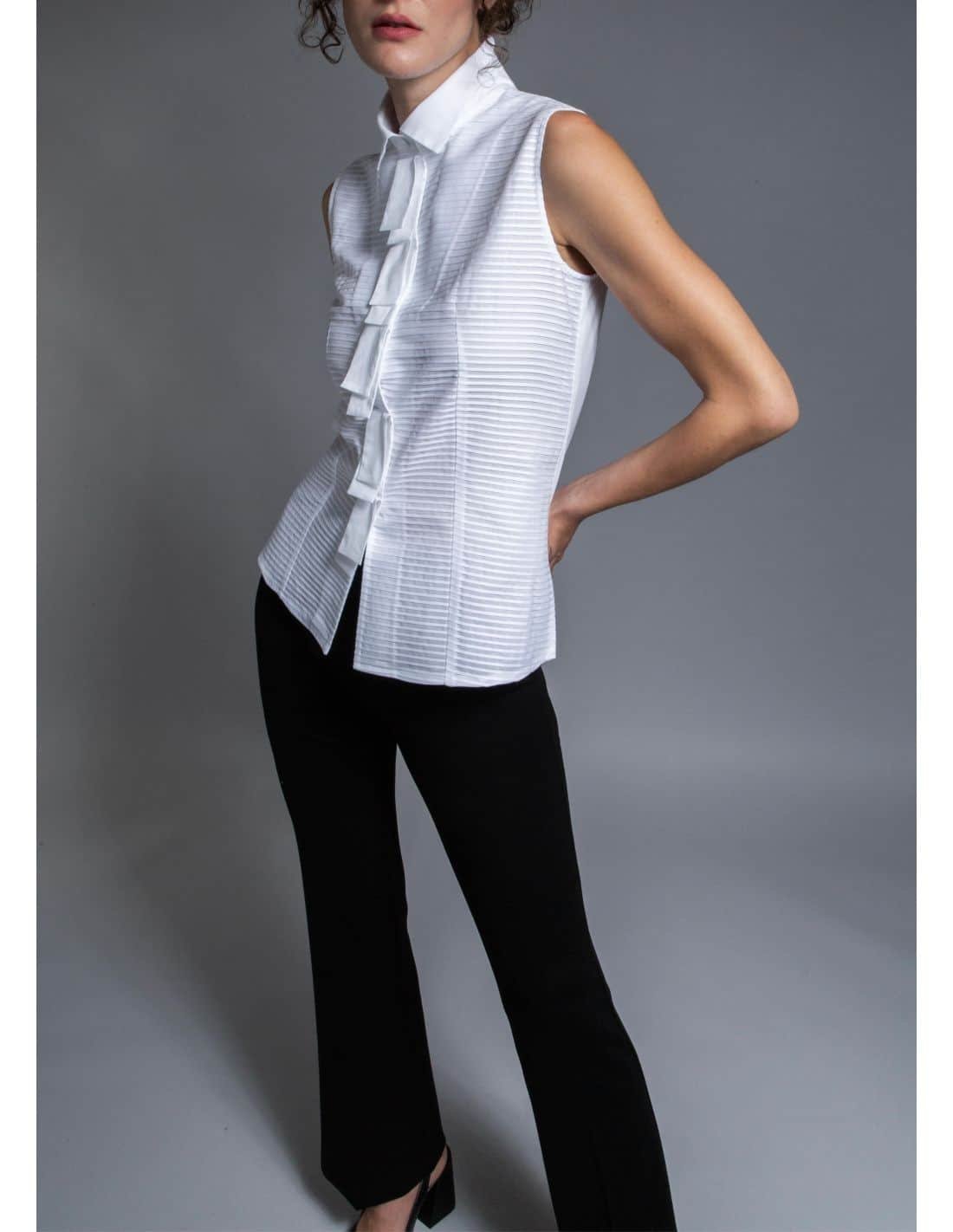 Apportez une touche de sophistication à votre garde-robe avec ce chemisier sans manches en coton blanc.