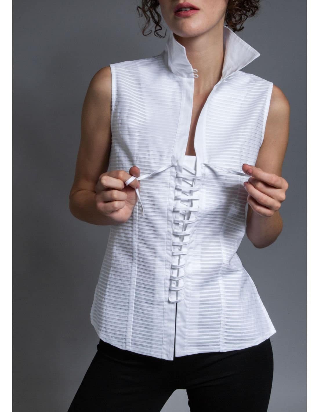 Apportez une touche de raffinement à vos tenues avec ce chemisier en Coton Blanc.