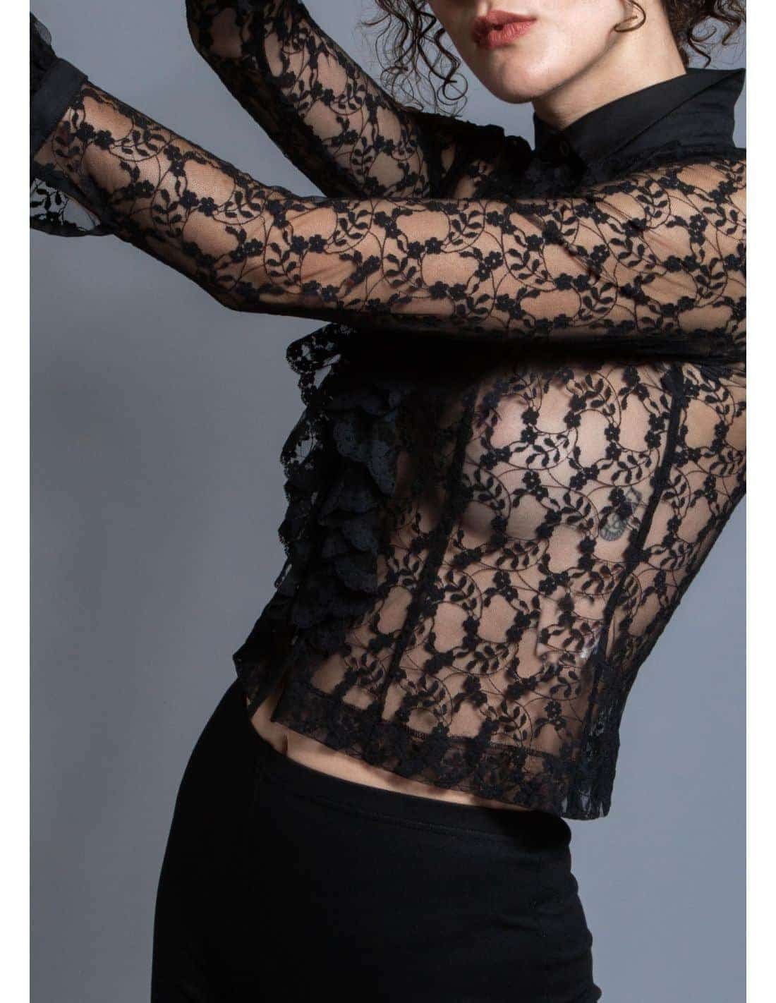 Ce chemisier en dentelle noire de haute qualité est un hommage à l’élégance.